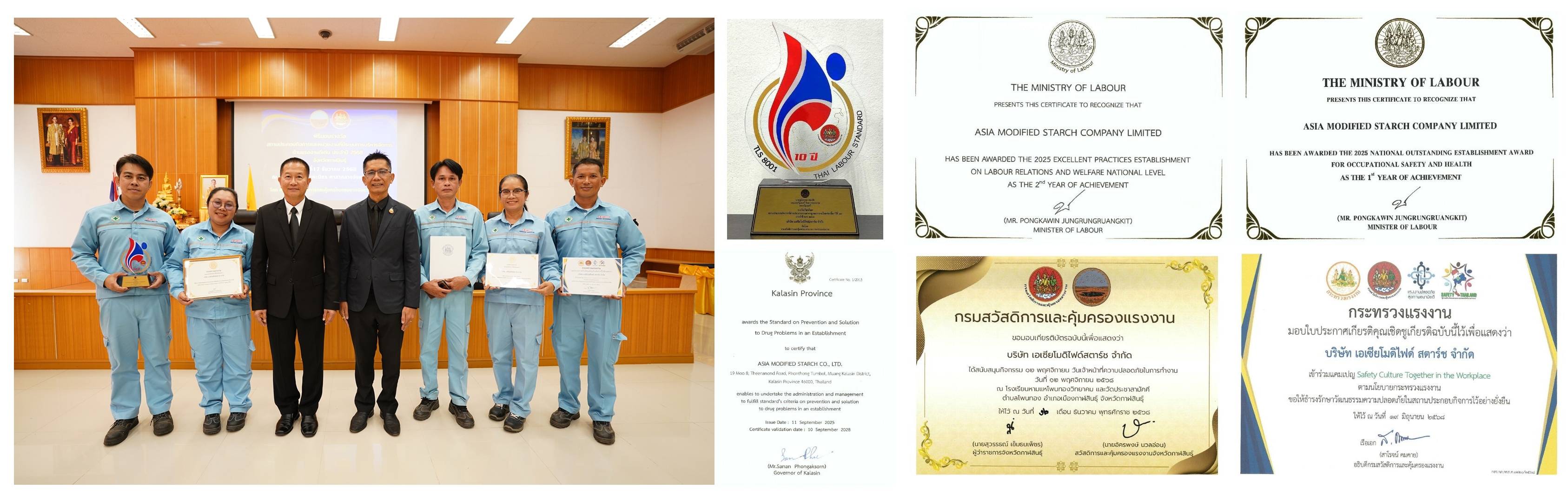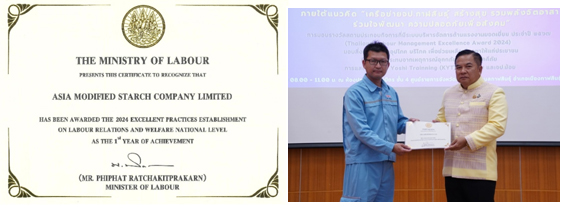 1. Thailand Labour Standard (TLS 8001) Certificate of Honour: For maintaining the Thai Labour Standard for 10 consecutive years.